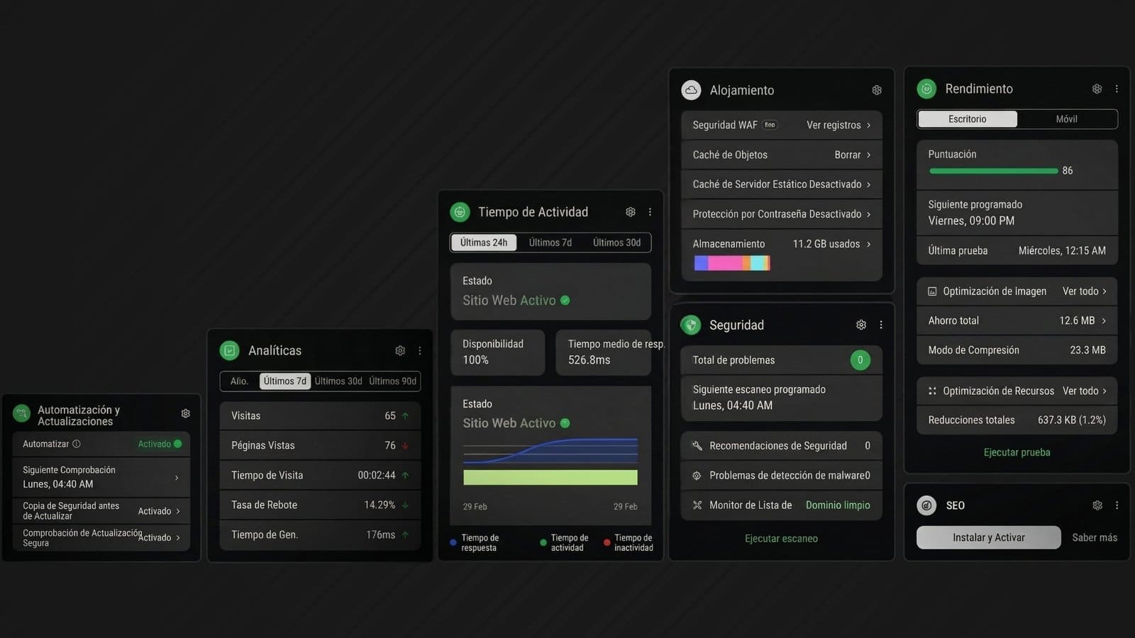 Transparencia total. Tienes acceso a nuestra plataforma exclusiva "The Hub", donde podrás ver reportes de visitas, rendimiento y el estado de salud de tu web en tiempo real.